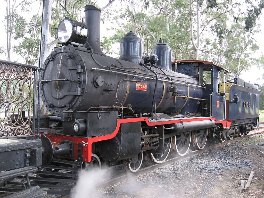 The 27th and 28th of June 2009 was a very auspicious day for me, as this weekend was scheduled for the theory and practical examinations that had to be passed in order for me to achieve my "steam ticket", or accreditation to operate a boiler and reciprocating engine. The theory turned out to be a full day of testing, with over 100 pages of questions to be answered. Thankfully, the practical test, while a little nerve wracking as I wasn't sure what was to happen, turned out to be far more enjoyable, with the chance to drive PB15 No. 448 out on the Box Flat branch being the way of assessing our prowess in handling a boiler and reciprocating engine. There were a few of us on the course, and we all took turns to fire and drive. I was fortunate at being one of the first to have a go, so managed to spend the rest of the day riding the train while the others were going through their assessments. This recording is of 448 running tender first from Box Flat, up one of the steepest grades on any current Queensland 3'6" line, with sections of 1:33 in places. We start off from Box Flat with the cylinder cocks open which are soon quickly closed and the engine is opened up for the first steep climb. With 100 tonnes on the drawbar, the engine is worked reasonably hard, but not thrashed up to the point where we reach a short downhill grade where she is shut off. We then hear the sound of the snifter valves releasing vacuum to the cylinders until the throttle is open again and we move along at a reasonable pace with the typical "whistling" chuff that PBs make when they aren't being worked to hard. This soon changes as the grade steepens again, but the engine settles down to a reasonable beat and the grade is soon crested and we coast into Swanbank station accompanied by the whine of the Pyle National light generator and the Westinghouse pump. 28 June 2009