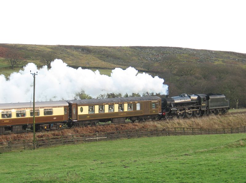 The rest of the afternoon did actually turn out quite pleasant, though the wind was a bit lazy, especially standing in a soggy playing field just outside of Grosmont with the air temperature hovering around 4 degrees Celsius. Given the lack of much noise on the Esk Valley, we decided to record the departure out of Grosmont with the Schools again at the head. At least in this one you can hear the 4-4-0 working well on the start out of the station and even after the diesel gives a bit of a push, the 3 cylinder beat drifts back to the microphone as the train heads up the Esk Valley again. Sunday 6 December 2009.