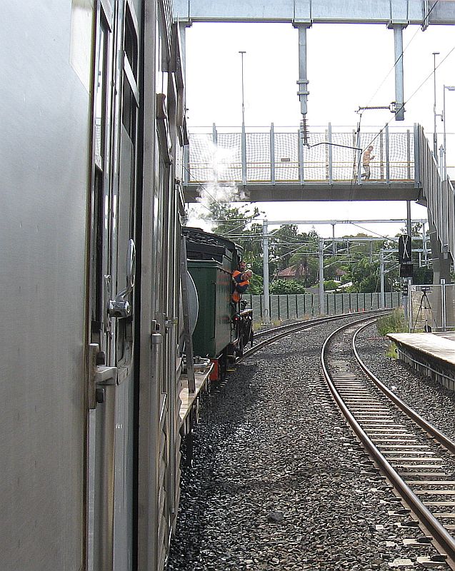 Queensland Rail is unique among railway operators in Australia in that it still owns and operates steam locomotives in heritage service. Given that it has been over 40 years since steam traction finished as regular motive power in the state, drivers and fireman who were qualified on steam in regular service are very thin on the ground and getting thinner every year. To help alleviate this, QR ran a few "steam schools" with one run back in 1997, but with 3-4 more retirements amongst steam men coming up, the opportunity was taken again to run one during April 2010. To assist with practical training, an all stations suburban service was run and this was initially publicised through one press release with only a few people knowing about it. We started off from Ipswich station right behind a preceeding electric service, so initially there weren't too many other passengers, however as we travelled further towards Brisbane, given we couldn't keep up with an electric timetable, we started to see full platforms of commuters waiting for the next electric service which was catching up to us. By the time we were at Toowong, the train was completely full and it was standing room only. Toowong Station is built over, so the station is completely enclosed, hence the noise of the loco was well amplified, so that, combined with a full train, and an aggressive start by the driver, meant some good noise was to be had on departure and for the acceleration to our next station stop at Auchenflower where the recording ends. 19 April 2010
