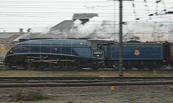 The very next morning after seeing Tornado, David and I headed out early to catch ex BR/LNER A4 Pacific 60007 Sir Nigel Gresley which was heading to Kings Cross from Newcastle. We are situated next to the East Coast Main Line at Challenors Whin, just south of York. First we hear the Gresley 3 chime whistle in the distance before the sound of an A4 accelerating to line speed reaches the microphone. Given we are next to a busy 4 track mainline (and also near a busy road!), its no surprise that a service train briefly interrupts the sound of steam before the A4 races by us on its way to Kings Cross. Saturday 28 November 2009.
