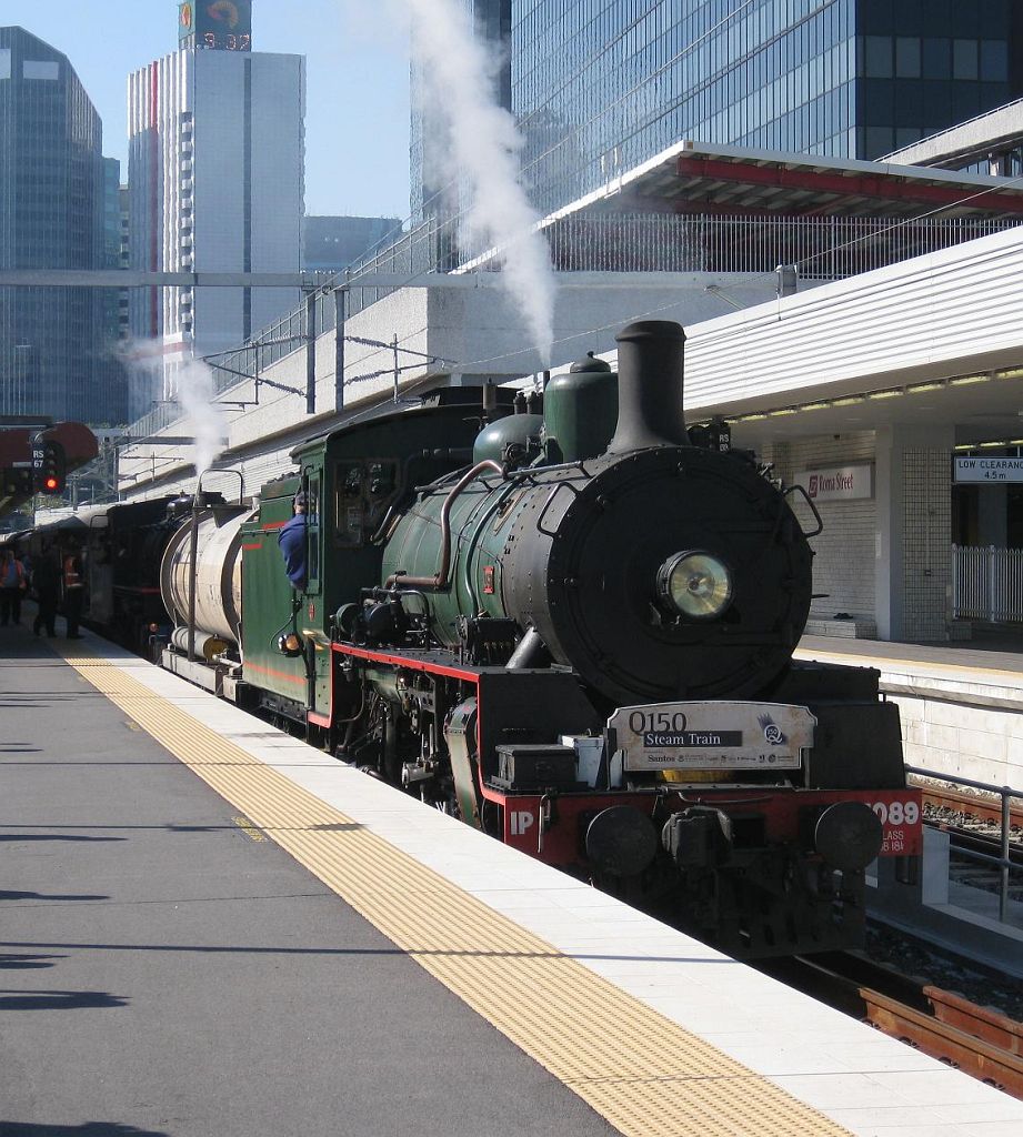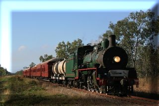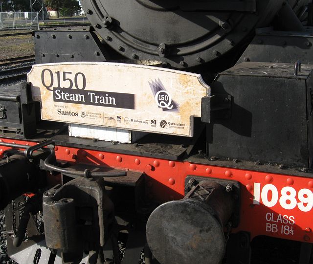 The State of Queensland was gazetted in 1859 by Queen Victoria (hence Queensland) and 2009 is the 150th anniversary of the event. Numerous celebrations were held around the state, all relatively low key, but still, at least it was recognised. One of the key events in all the celebrations was the Q150 Steam Train, where Queensland Rail's heritage fleet hauled a train around the state, travelling north up to Cairns and up the famous Kuranda Range, plus north west to Mt Isa and south west to Charleville and Quilpie, and finally as far south as possible to Wallangarra. The train was predominantly hauled by BB18 1/4 Pacifics 1079 and 1089, plus AC16 221A also assisted here and there, and the recently restored English Electric diesel No. 1620 also deputised when steam couldn't make it.