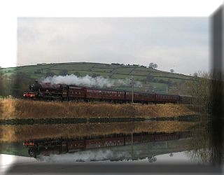 We headed down to Levisham to see the "Pocket Rocket" BR Standard Class 4 2-6-0 76079 arriving with the Santa Train from Pickering. After running around, the engine coupled on to the train and we started recording ready for the departure. Well, the departure time came and went, and after several more minutes, we found out why. 45212, the Black 5 which had worked the dinner train, was returning light engine heading back to pass gingerly over Bridge 30 and down to the engine shed at Grosmont. We hear the 4-6-0 whistling for the home signal, then passing quietly behind the Santa train, exchanges tokens and after another whistle, is heard moving off towards Goathland and Grosmont. After the driver retrieves the token for travelling back to Pickering, we hear the guard climb aboard, whistle "Right Away!" and the train heads back towards the other terminus, accompanied by the sounds of a generator on the rear coach, and some volunteers digging a new ditch to get rid of all the water from the recent flooding rains. Sunday 6 December 2009.