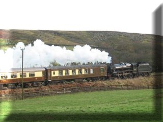 Since Leander was stopping at Hellifield for water, we headed over to Giggleswick, just west of Settle Junction where the line to Carnforth and Settle and Carlisle lines split. The night was very still and a long way from most roads, however given the still air, the sounds of the A65 road carry back to the microphone as we hear a faint whistle in the distance and the sound of 3 cylinders accelerating a train back to line speed after negotiating Settle Junction. The sound builds ever so gradually, with more whistles as the train heads through Giggleswick station and roars past the microphone, heading under two overpasses before cresting the bank and accelerating down the other side, with the 47 on the rear doing only enough to negate its weight and provide nice electrical heating for the passengers. After the train passes, some local geese (who must have been motorcading!) chase the train west. Saturday 28 November 2009.